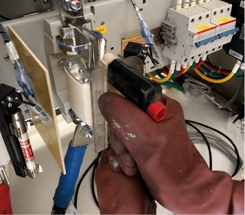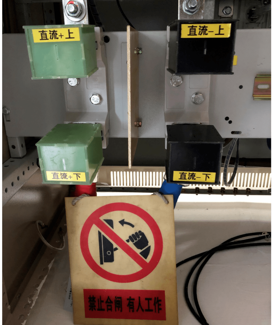 3. 取下蓄電池組保險后,在蓄電池保險的底座正極上下兩端、負(fù)極上下兩端分別套上大小合適的絕緣盒,并在絕緣盒上分別掛禁止合閘,有人工作!標(biāo)示牌。