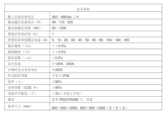 微機(jī)控制高頻開關(guān)直流屏成套裝置適用于發(fā)電廠,各類變電站和其它使用直流設(shè)備的用戶(如石化、礦山、鐵路等),為信號(hào)設(shè)備、保護(hù)、自動(dòng)裝置、事故照明及斷路器分、合閘操作提供直流電源,并在外部交流電中斷的情況下,保證由后備電源一蓄電池繼續(xù)提供直流電源的重要設(shè)備。尤其適用于無人值守變電站,是50萬伏以下變電站理想的直流屏電源系統(tǒng)。